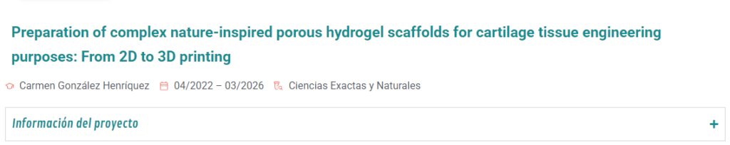 En Ejecución ANID | FONDECYT Regular | 1220251 Preparation of complex nature-inspired porous hydrogel scaffolds for cartilage tissue engineering purposes: […]